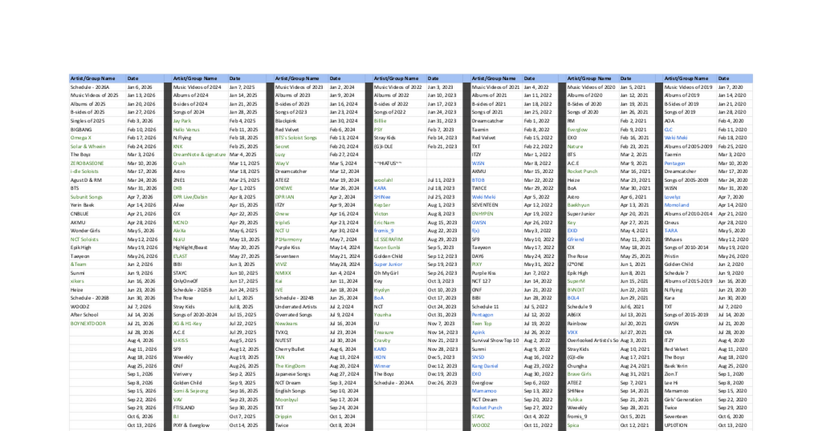 • MV が投稿されているアーティスト /r/kpop 対象者です。