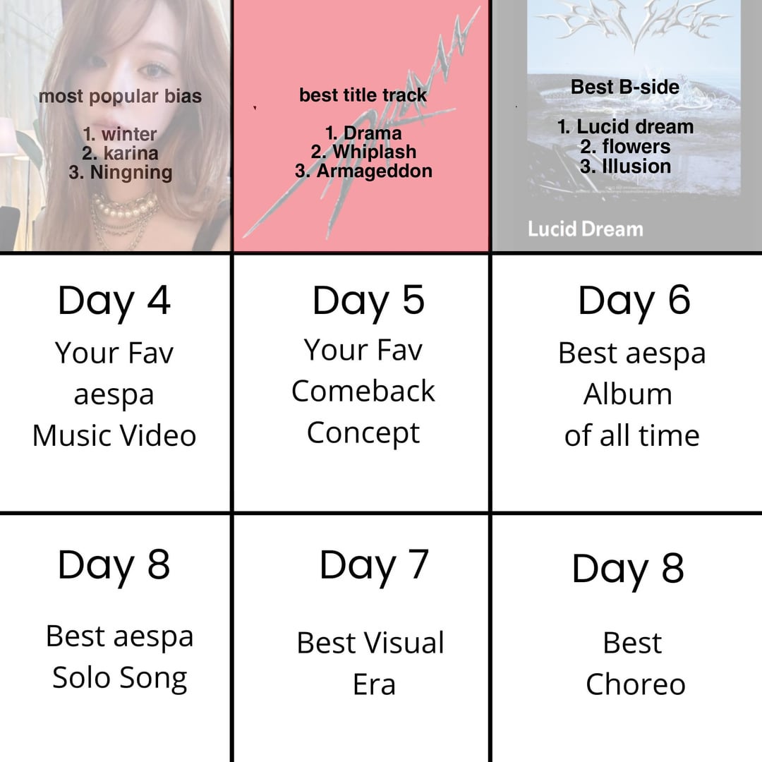 明晰夢が勝ちました! 4日目、あなたのお気に入りのaespaミュージックビデオは何ですか?始めます、私にとってそれはお金持ちです!